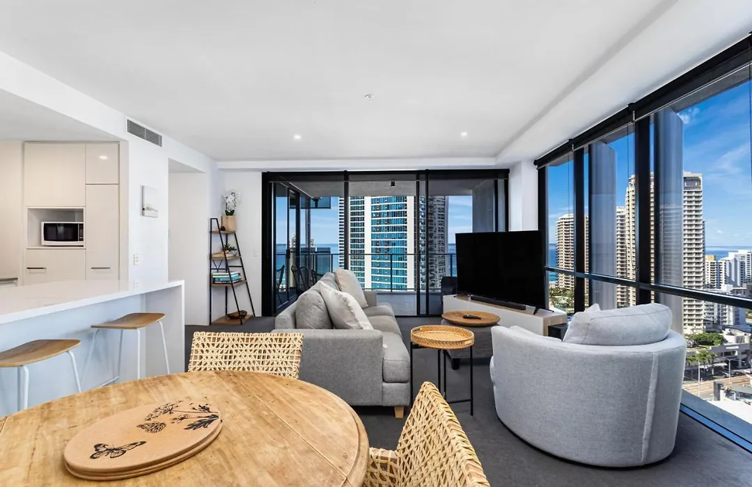 Die 110 m² großen Coastal Skyline Luxury Suite Gold Coast liegt im Viertel Surfers' Paradise von Gold Coast etwa 7 Gehminuten von den Surfers Paradise Beachfront Markets entfernt und bietet seinen Gästen einen Jacuzzi und einen Whirlpool zum Entspannen. Das 2-Zimmer-Apartment ist in 450 Meter Entfernung von der Unendlichkeit gelegen.